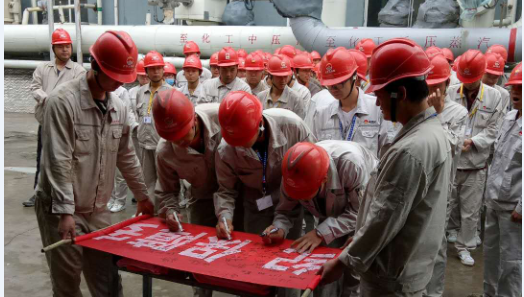 宣誓活動(dòng)結束后,副總經(jīng)理張建東和尚繼榮率先在印有“安全生產(chǎn),生命至上”的條幅上簽名。隨后,各科室裝置員工按照先后順序依次簽名。