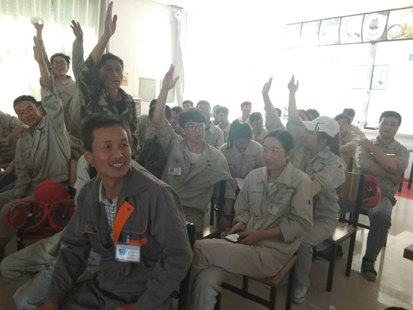 此次安全知識競賽共設置必答題、搶答題和看圖識隱患三個(gè)答題項目,共有生料代表隊、成品代表隊、電儀代表隊、質(zhì)檢科代表隊和安環(huán)生產(chǎn)科代表隊五支代表隊參賽。比賽期間無(wú)論是代表隊參賽選手還是觀(guān)賽觀(guān)眾都踴躍參與、積極答題,營(yíng)造了良好的比賽氛圍。