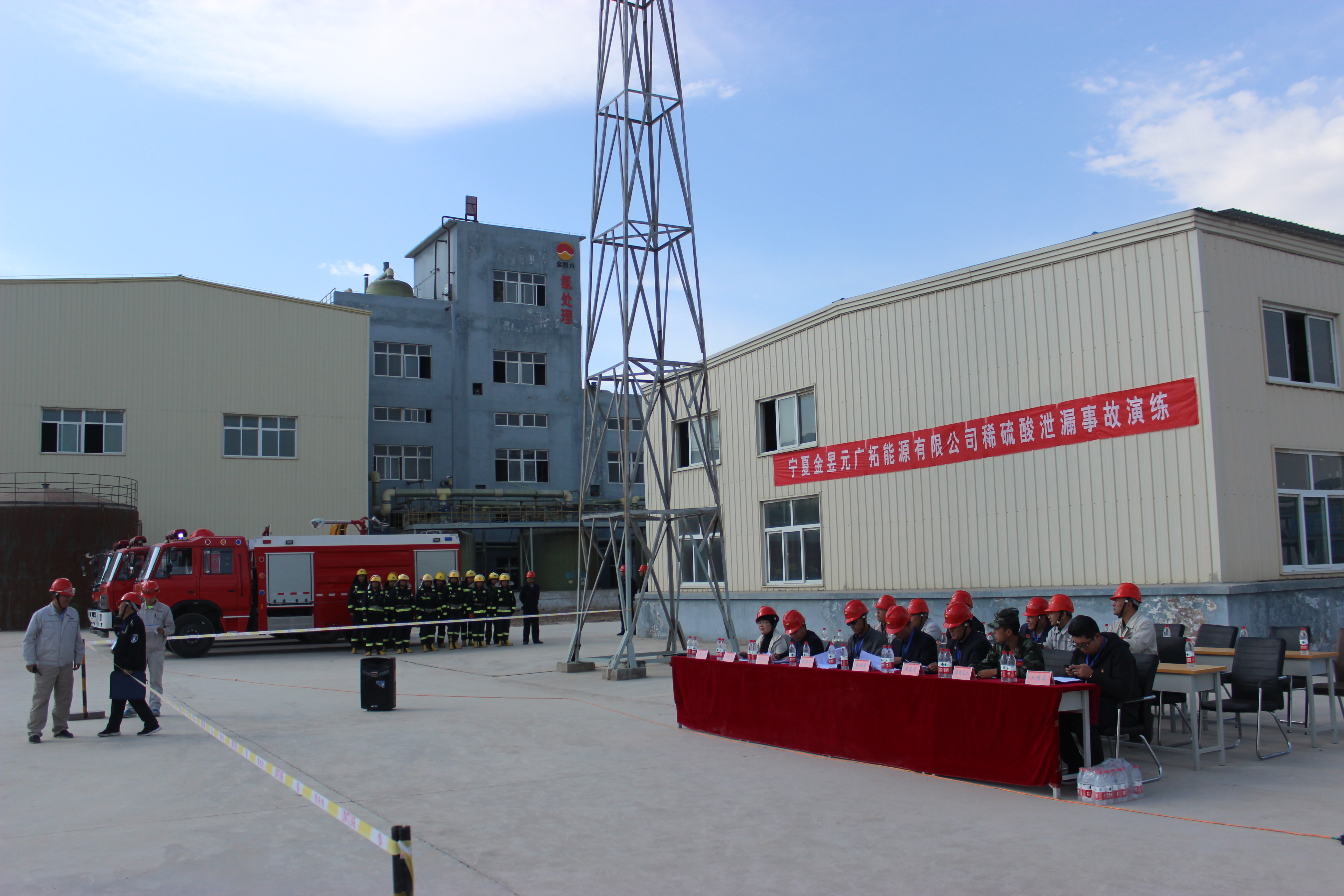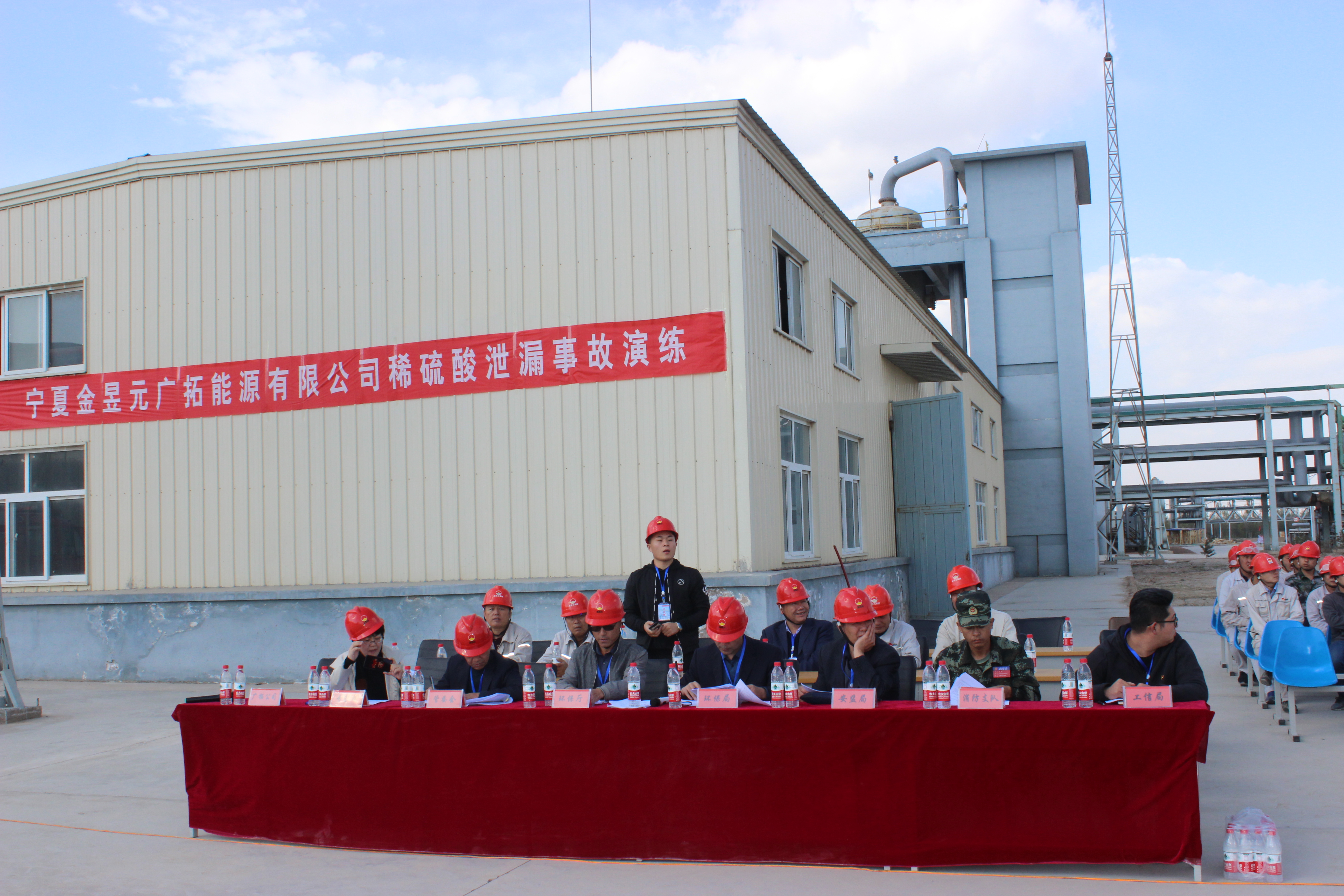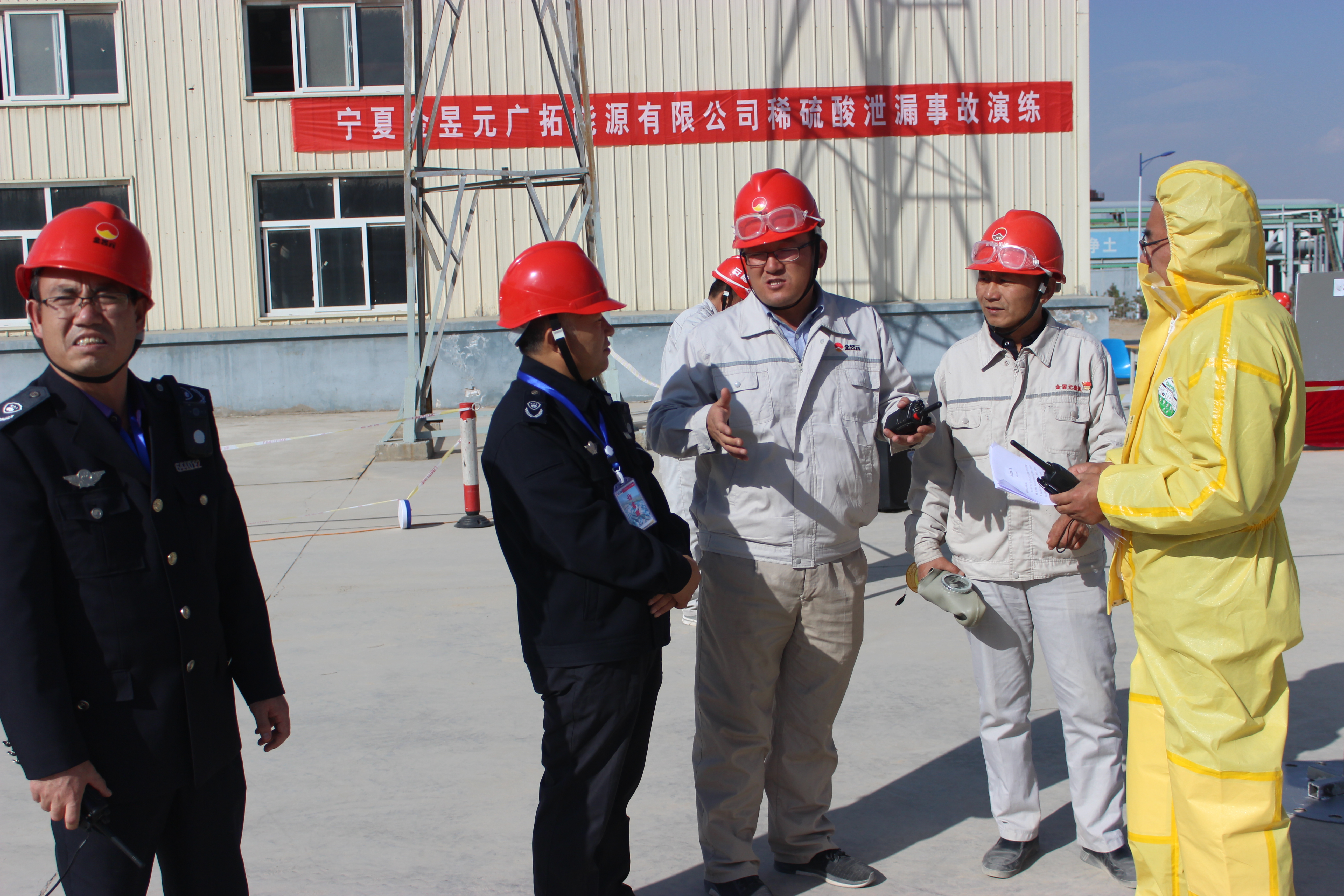 為有效應對各類(lèi)突發(fā)性環(huán)境污染事件,妥善處置次生環(huán)境污染,進(jìn)一步提高操作人員處理突發(fā)環(huán)境事故的應急能力。2018年10月11日下午15時(shí),由固原市環(huán)保局主辦,寧夏金昱元廣拓能源有限公司承辦,在化工公司廢硫酸回收處理裝置北側小廣場(chǎng),舉行了稀硫酸泄漏較大環(huán)境事故應急演練。