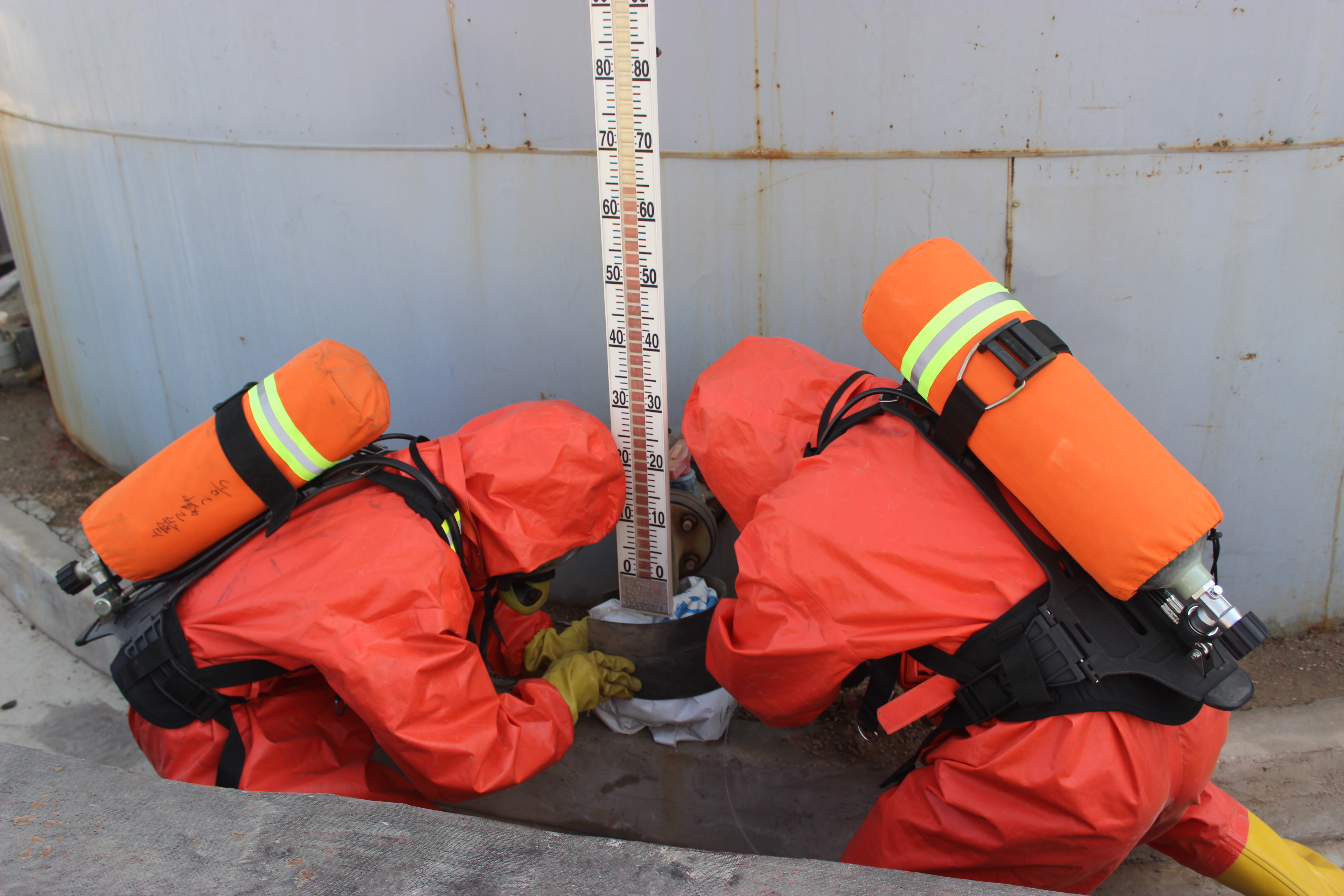 此次演練是以稀硫酸儲槽現場(chǎng)液位計根閥斷裂造成硫酸大量泄漏,在搶修堵漏過(guò)程中,由于硫酸泄漏較大,圍堰內事故池稀硫酸外泄,造成污染的模擬險情演練。演練過(guò)程中,各參演人員認真對待,全情投入,順利完成了演練啟動(dòng)、確認險情、現場(chǎng)搶險、尋求支援、搶險救援、險情控制、環(huán)境控制等環(huán)節,演練取得預期效果,圓滿(mǎn)完成演練目標任務(wù)。