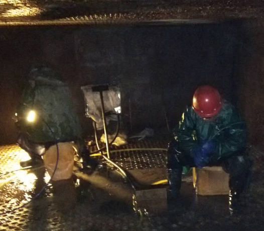 因2#鍋爐上下級空預器堵塞嚴重,無(wú)法滿(mǎn)足生產(chǎn)負荷要求,影響鍋爐正常運行,2019年1月14日9點(diǎn)30分,根據公司停車(chē)檢修計劃,對2#鍋爐空預器管進(jìn)行清洗及疏通,首先在煙道底部制作排水口,引至地溝,保證現場(chǎng)路面無(wú)積水及結冰,待空預器內溫度下降,公司領(lǐng)導組織崗位人員輪流進(jìn)入空預器清理積灰,為空預器管道清洗及疏通做好各項準備工作,15日正式使用清洗機對空預器進(jìn)行帶壓清洗,所有人員不怕苦、不怕累、放棄休息時(shí)間協(xié)助外包人員及時(shí)疏通空預器堵塞管道,更換空預器套管,檢修人員雖然穿著(zhù)厚厚的棉衣,但不一會(huì )也被寒冷打透。手凍僵了,他們搓了搓接著(zhù)干。
