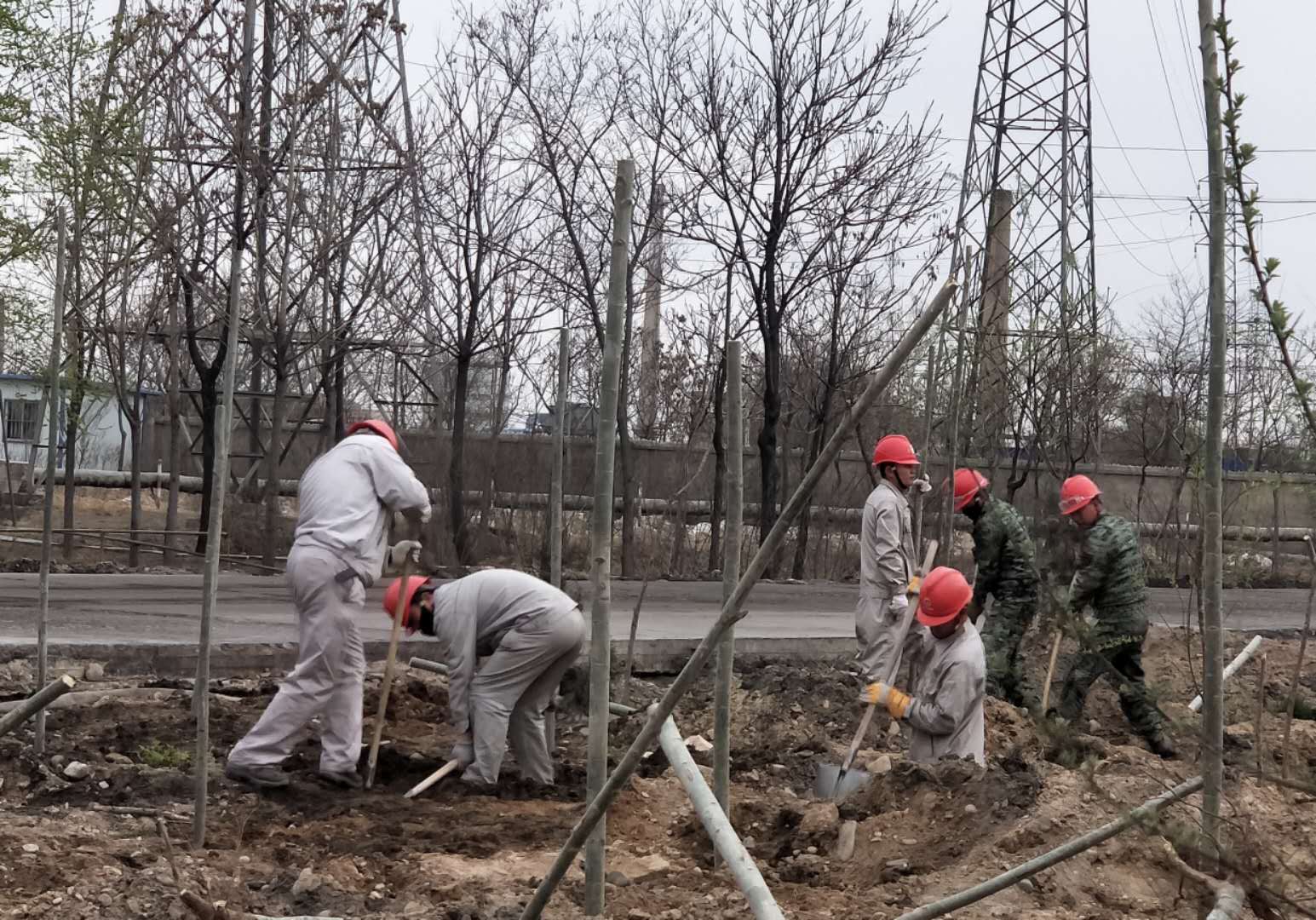 4月10日和11日,資源再生公司組織所有日勤人員栽種樹(shù)木。先后在東大路西側,4#電石爐西側,職工回民餐廳門(mén)口及成品裝置東邊等等地方栽種樹(shù)木上千棵。大家齊心協(xié)力,扶樹(shù)的、填土的,每個(gè)人都在努力的加快進(jìn)度,頭上冒出了汗珠,渾身酸痛,可大家仍然堅持著(zhù),短短兩天時(shí)間就將所有計劃的樹(shù)木全部栽種完畢。