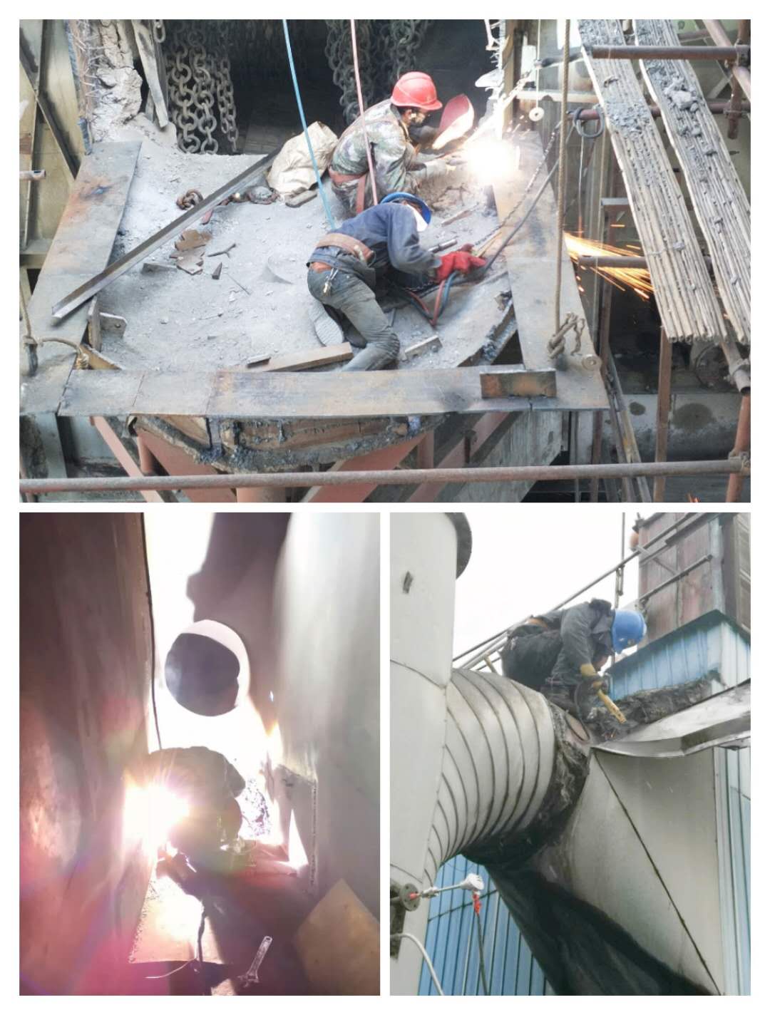 說(shuō)到狹小的空間,我又想到了幾天前補焊收塵管道的維修工,那里也是僅能一人爬進(jìn)去作業(yè),但維修工張凌云和馬海濤沒(méi)有退縮,辦理好作業(yè)票證,他們倆爬進(jìn)了收塵器里認真而又圓滿(mǎn)的完成了補焊作業(yè)。