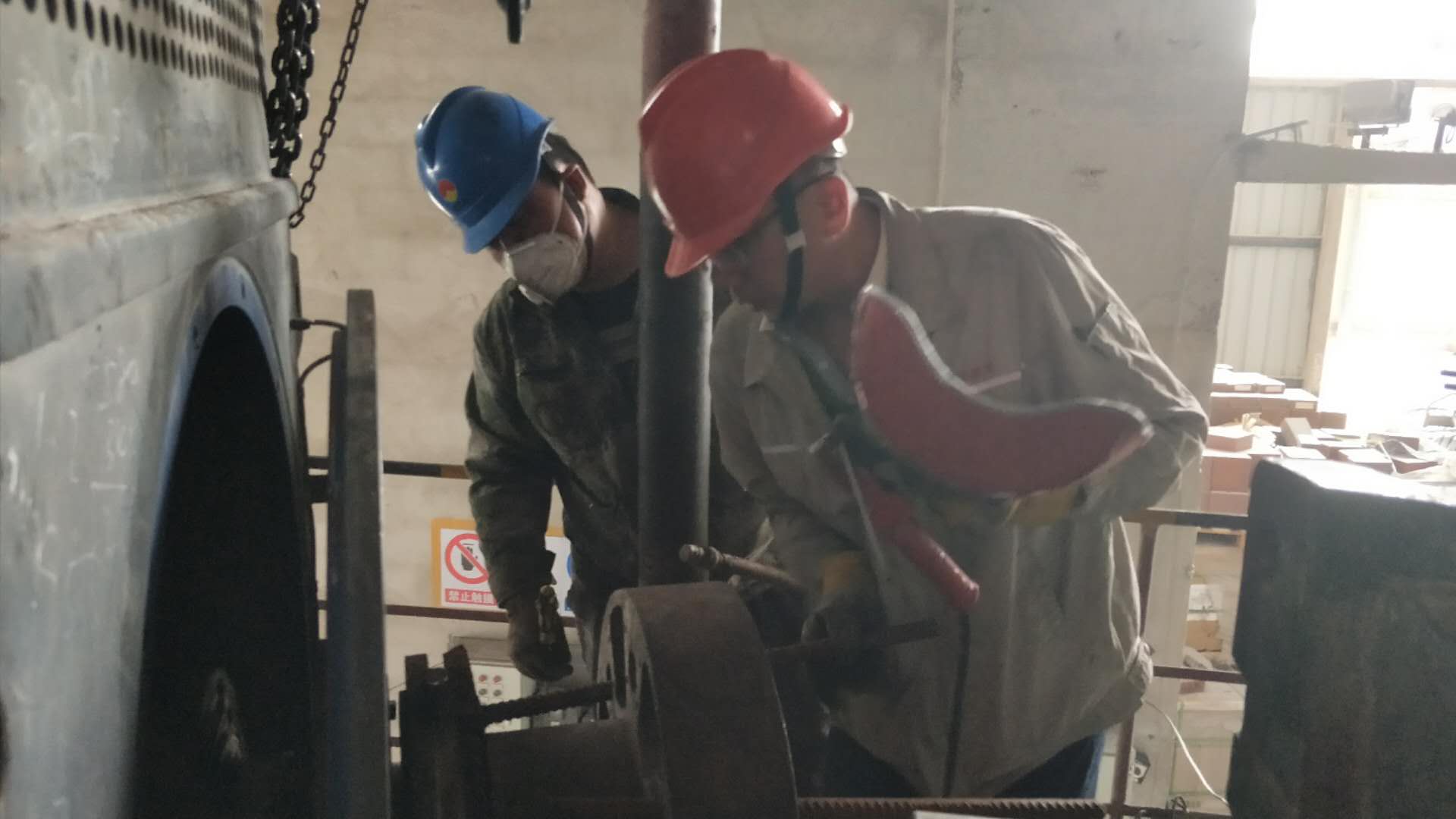 5月27日,檢修人員頂著(zhù)大風(fēng)降溫,加班加點(diǎn)完成烘干破主電機和生料磨輥壓機側擋板檢修。