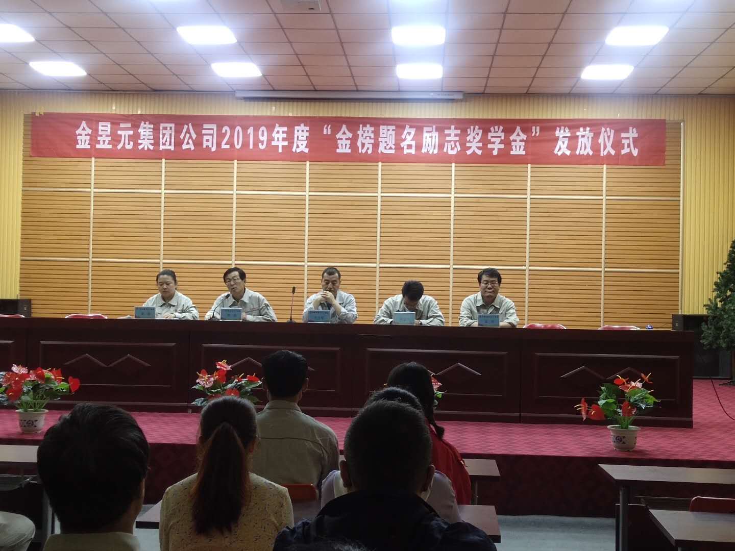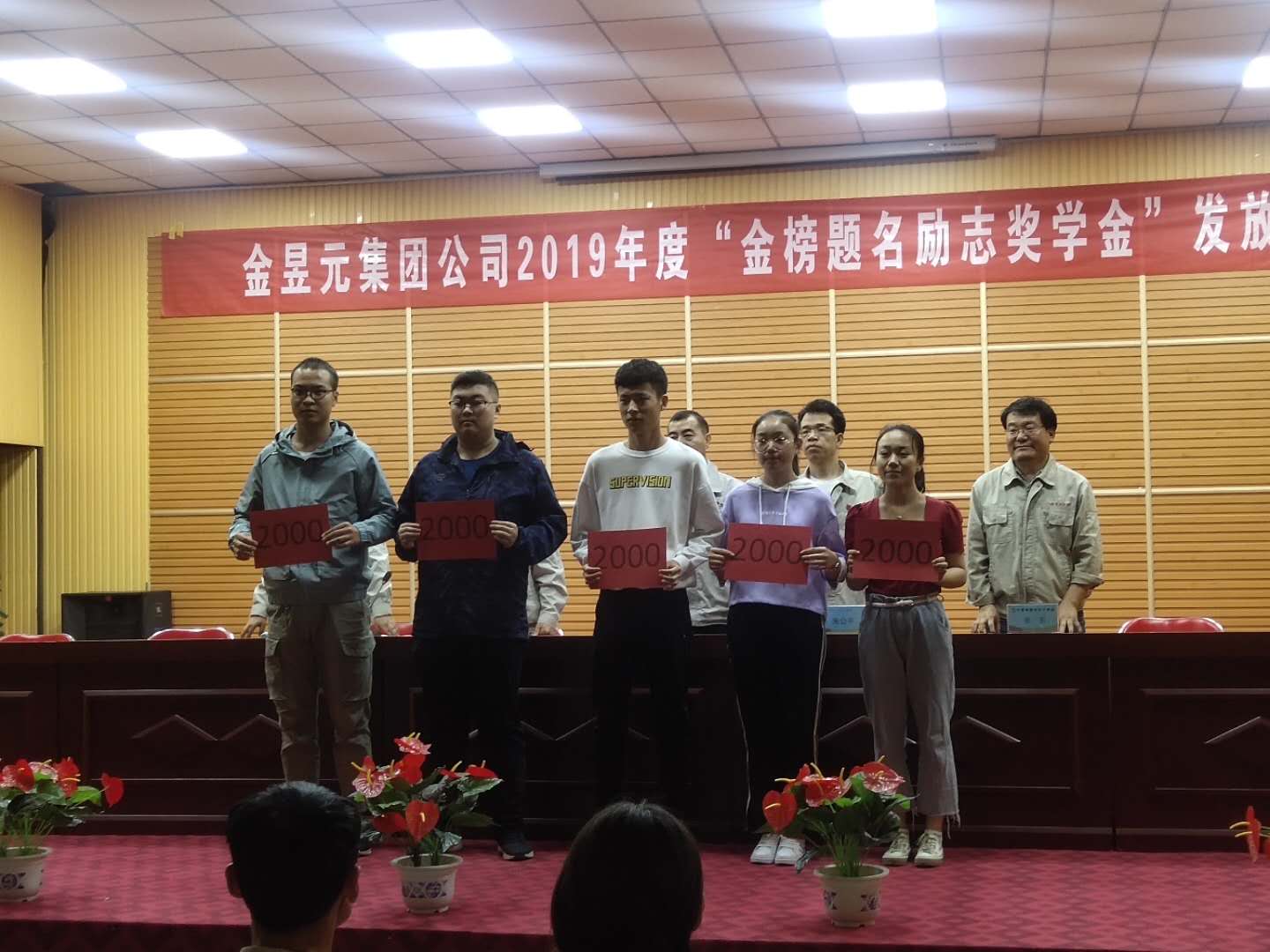 2019年8月23日,集團公司領(lǐng)導為2019年度金昱元的職工子女考取一、二本院校。發(fā)放“金榜題名勵志”獎學(xué)金,此次活動(dòng)鼓勵了全體金昱元職工,學(xué)習這些父母培養優(yōu)秀子女的經(jīng)驗,同時(shí),此大會(huì )能為培養出優(yōu)秀的兒女的父母表示祝賀。