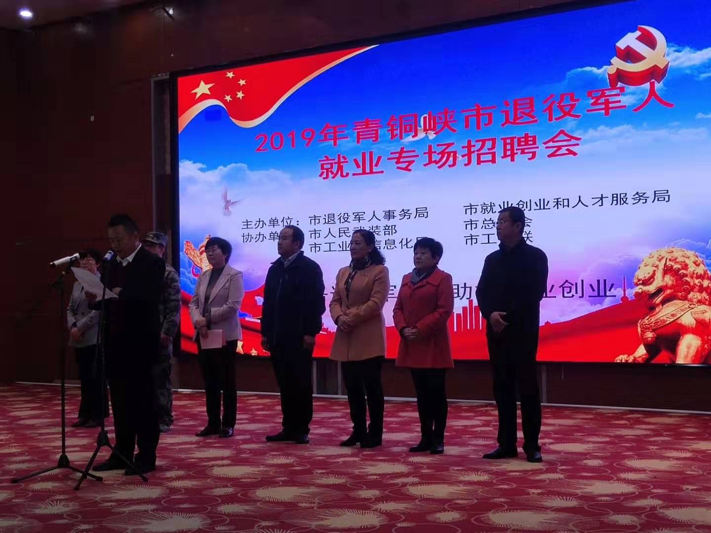 2019年10月23日上午,資源再生公司組織人員參加由青銅峽市退役軍人事務(wù)局、就業(yè)創(chuàng )業(yè)和人才服務(wù)局主辦的2019年退役軍人就業(yè)專(zhuān)場(chǎng)招聘會(huì )。招聘現場(chǎng),前來(lái)咨詢(xún)的人員絡(luò )繹不絕,通過(guò)我們的詳細介紹,擁有一技之長(cháng)和大專(zhuān)畢業(yè)證的退伍軍人對我公司的維修崗位有就業(yè)意向,填報名表的將近有十人,我們期待他們的加入,并在資源再生這個(gè)大舞臺展現他們的風(fēng)采。