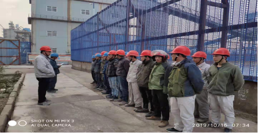 10月16日上午7時(shí)40分,成品裝置集結熟料煅燒工序、維修班人員針對回轉窯耐火磚挖補進(jìn)行檢修前的動(dòng)員大會(huì )。