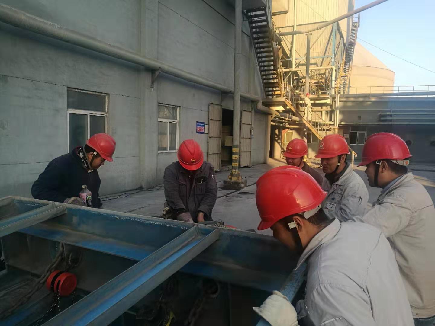 一、成品裝置長(cháng)黃勃強帶領(lǐng)維修工對均化庫底空氣斜槽技改,認真辦理受限空間作業(yè)票證。指導維修人員計算材料,核對圖紙,然后利用簡(jiǎn)單的工具就地進(jìn)行比劃!