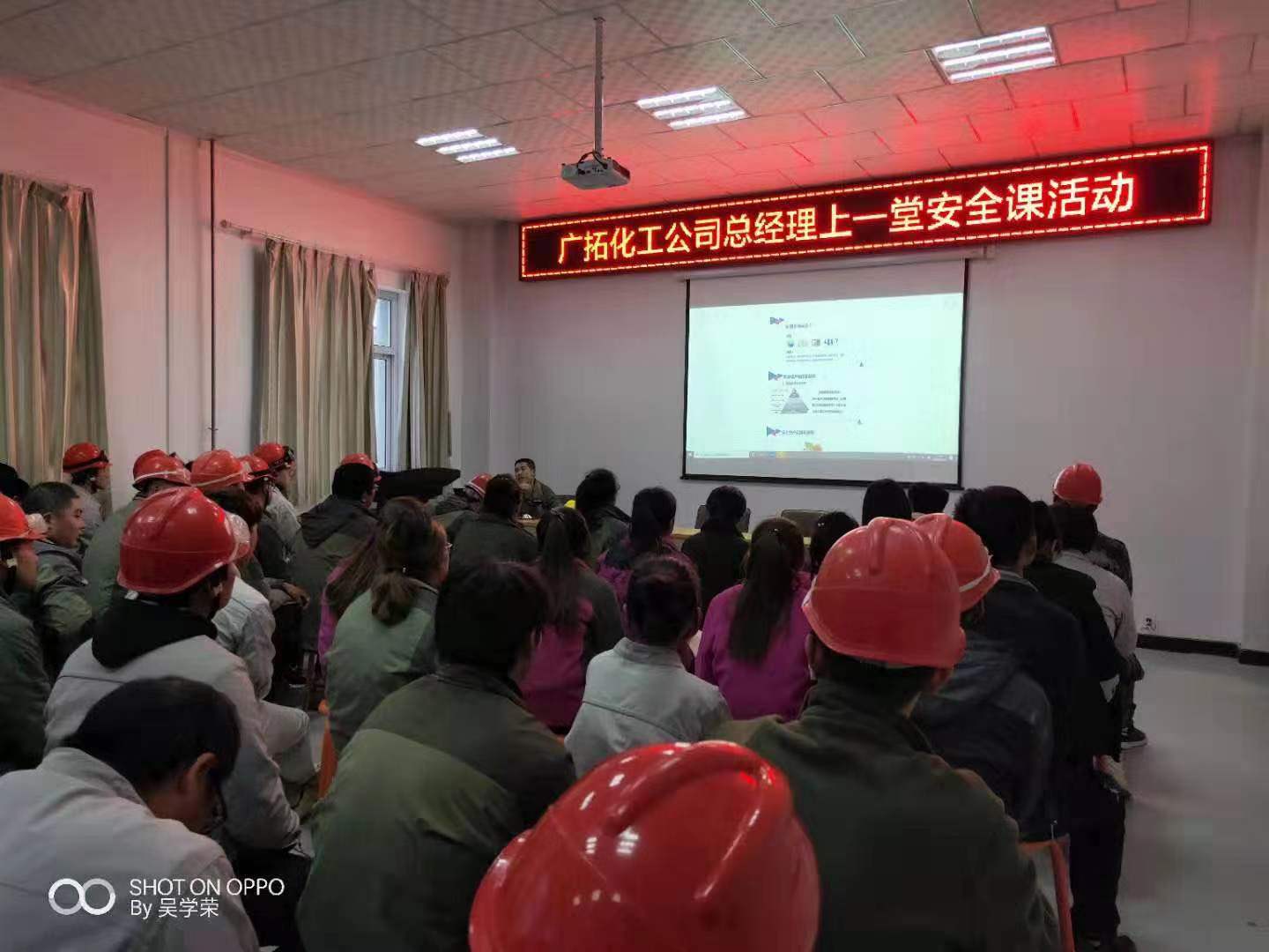 2019年11月25日下午四點(diǎn)五十分,廣拓化工公司“總經(jīng)理講一堂安全課”之篇正式開(kāi)講,主要從安全對個(gè)人、對企業(yè)、對社會(huì )的意義和安全事故的主要誘因等幾方面進(jìn)行了詳細闡述。