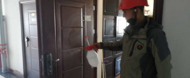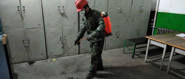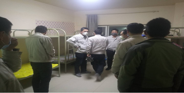 在宿舍,檢查留宿人員、進(jìn)行衛生消毒等“疫情”防控工作。