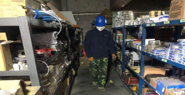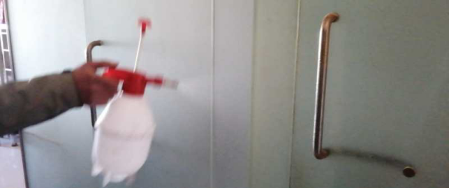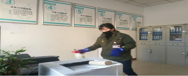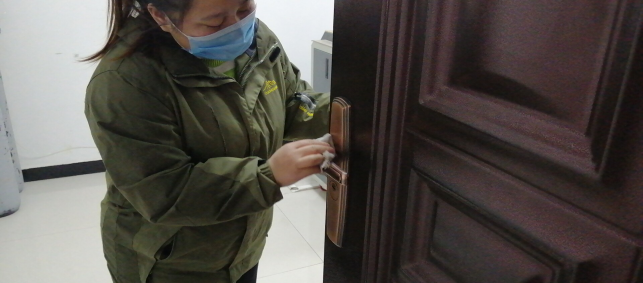 擦拭操作臺、門(mén)把手,進(jìn)行衛生消毒,工作的有條不紊。