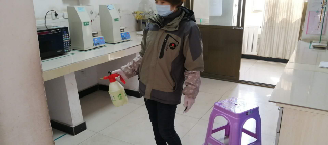 擦拭操作臺、門(mén)把手,進(jìn)行衛生消毒,工作的有條不紊。