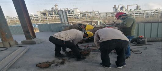 公司總經(jīng)理吳紅衛、副總經(jīng)理梁軍和副總經(jīng)理曹愛(ài)新分頭行動(dòng)一直守在全體參戰管理人員和工人的身旁,叮囑安全。為挖補的順利進(jìn)行和下一步滿(mǎn)負荷運行承擔著(zhù)繁重的檢修規劃。