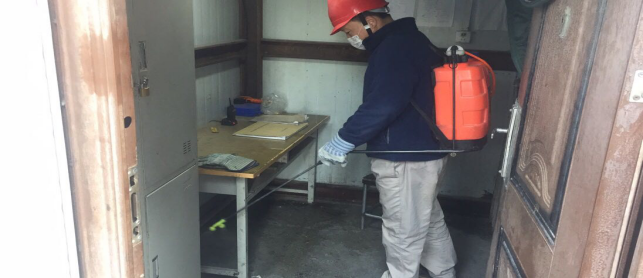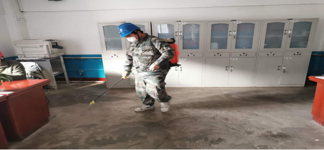 擦拭操作臺、門(mén)把手,工作的有條不紊。
