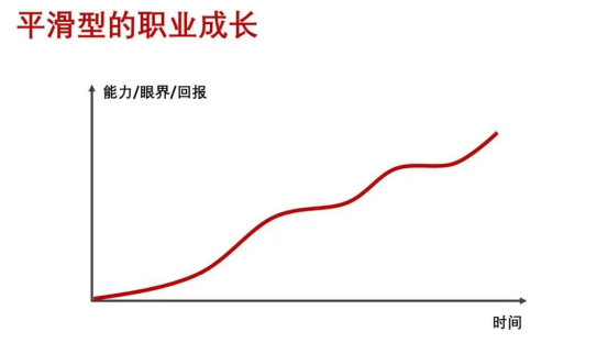 畫(huà)圖來(lái)顯示,就是下面這樣,你的職業(yè)成長(cháng)路徑應該是一條非常平滑的曲線(xiàn):