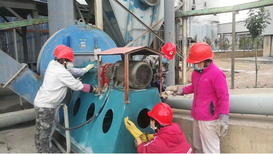 奮戰一線(xiàn),不畏艱辛。檢修開(kāi)始以來(lái),他們人數不多。就綜合科、質(zhì)檢科及各單位辦事員共不到10人的隊伍,搭起來(lái)整個(gè)現場(chǎng)衛生的清理工作。期間,在每次進(jìn)入庫底清掃清理設備灰塵,進(jìn)去一會(huì )兒,只見(jiàn)滿(mǎn)屋飄蕩的灰塵,籠罩了整個(gè)屋子,分不清誰(shuí)是誰(shuí),但她們一絲不茍的作風(fēng)一遍又一遍進(jìn)去憋足氣掃一會(huì ),出來(lái)歇上幾分鐘,反反復復全面把灰塵清理干凈,然后對設備進(jìn)一步擦拭,擦拭風(fēng)機外殼的灰塵,設備漏出了久違的笑臉。作為此次檢修,確保設備衛生,她與男同胞一起并肩作戰,同時(shí)上下班,面對灰塵的侵擾,她們沒(méi)有一個(gè)叫苦、叫臟、叫累的……看似柔弱的身軀,同樣揮汗如雨奮斗在一線(xiàn),手拿工具的氣勢和嚴肅認真的態(tài)度毫不遜色于男同胞。