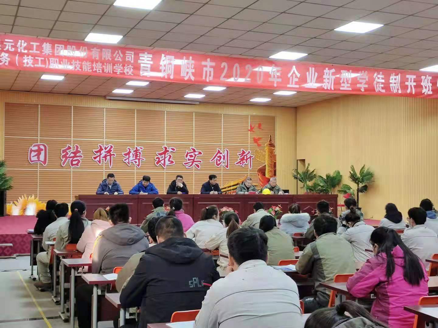2020年12月22日,寧夏金昱元化工集團有限公司與寧夏新商務(wù)(技工)職業(yè)技能培訓學(xué)校聯(lián)合開(kāi)辦的青銅峽市2020年企業(yè)新型學(xué)徒制開(kāi)班儀式在集團公司職工活動(dòng)中心舉辦,青銅峽市工信廳相關(guān)領(lǐng)導以及青銅峽片區總經(jīng)理助理丁青林和集團公司企管部宋釗參加此次開(kāi)班儀式.青銅峽片區各子公司2020年新入職員工全部參加此次開(kāi)班儀式。在今后的工作中,所有新員工將會(huì )在工作空余時(shí)間參與學(xué)校集中培訓,逐步提高各類(lèi)操作技能,達到獨立上崗的操作要求。