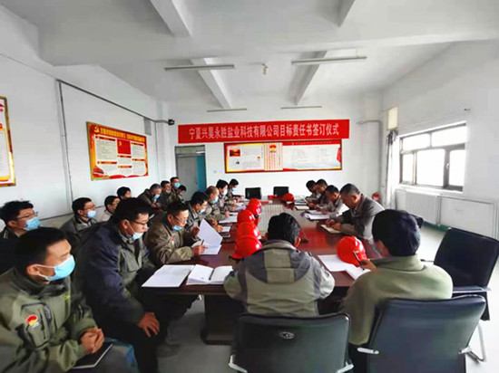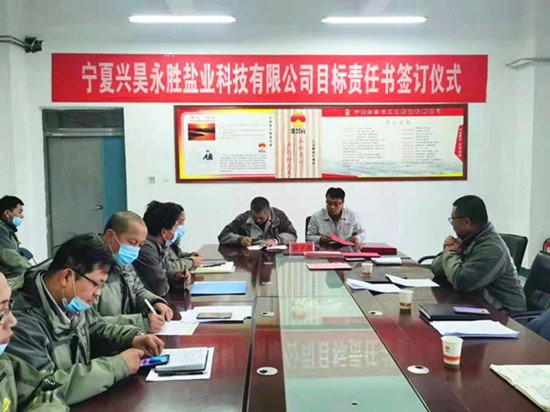2021 年 1 月 7 日 15:30,寧夏興昊永勝鹽業(yè)科技有限公司召開(kāi)了2021年首次安委會(huì )擴大會(huì )議暨安全生產(chǎn)目標責任書(shū)簽訂儀式。會(huì )議由公司總經(jīng)理主持,公司安委會(huì )全體成員及技術(shù)員以上人員參加了本次會(huì )議。