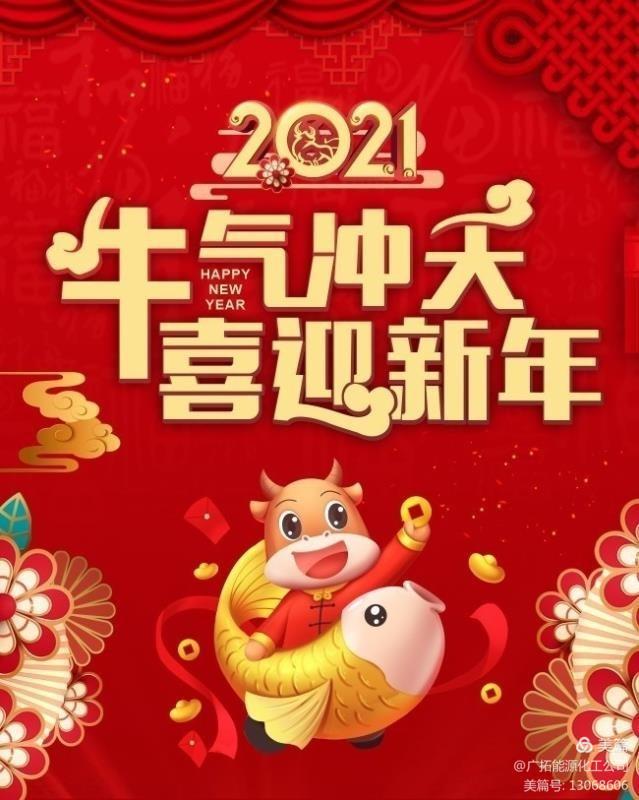 金牛奮蹄開(kāi)錦繡,牛耕年豐又一春。值此農歷辛丑牛年到來(lái)之際,廣拓化工公司總經(jīng)理賈存富攜公司領(lǐng)導班子向全體員工和給予化工公司鼎力支持的各級領(lǐng)導、朋友致以衷心的感謝和良好祝愿,祝大家在新的一年里牛氣沖天,身心健康,萬(wàn)事如意!