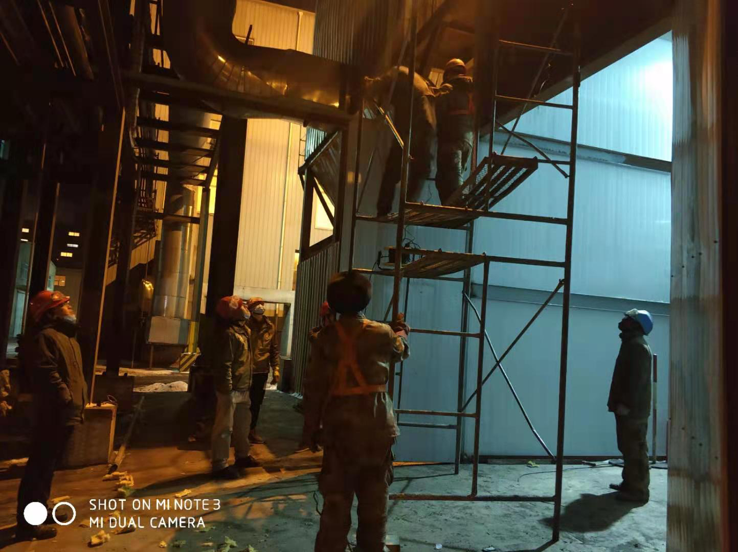 2021年1月8日,是固堿裝置檢修熔鹽爐及安裝脫硝設備的日子,一大早,檢修現場(chǎng)現場(chǎng),就看見(jiàn)他們忙碌的身影。