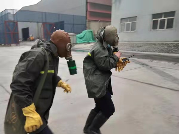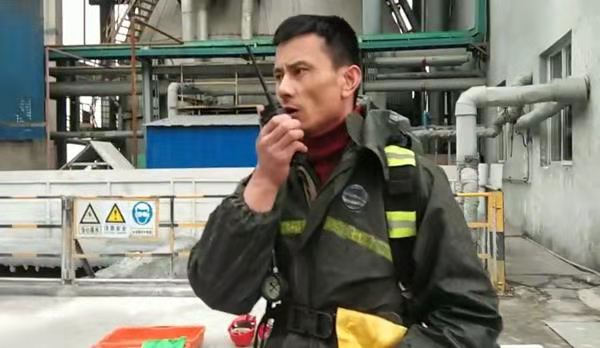 各組人員迅速展開(kāi)搶險救援步驟。調度張培基抽調班組義務(wù)消防員攜帶應急物資(正壓式空氣呼吸器、酸堿手套、防毒面罩、警戒帶、雨鞋、雨衣、應急藥箱)至2#脫硫配漿池處集合……以氨罐區為中心點(diǎn),將半徑20米范圍內人員進(jìn)行疏散,根據風(fēng)向標指示情況,將人員轉移至上風(fēng)口安全地帶,對泄漏點(diǎn)南側、北側、西側三面警戒隔離,防止無(wú)關(guān)人員進(jìn)入;義務(wù)消防員佩戴正壓式空氣呼吸器,穿防護服至脫硫罐區打開(kāi)噴淋裝置,落實(shí)泄漏點(diǎn)具體位置,稀釋有毒氣體,并立即對泄漏點(diǎn)進(jìn)行修復。經(jīng)過(guò)15分鐘的現場(chǎng)搶險救援,氨水泄露得到有效控制。