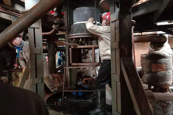燈頭是蒸汽爐最核心的部件,它就如同蒸汽爐的“心臟”,保證著(zhù)蒸汽爐的安全平穩運行。由于燈頭是石英材質(zhì),不能有任何碰撞。有著(zhù)二十年檢修工作經(jīng)驗沈培銀老師傅,像一名“將軍”一樣,指揮著(zhù)大家拆燈頭,滿(mǎn)身的油污,像軍功章一樣掛在他的胸前。只見(jiàn)他拿來(lái)三根全絲螺桿,均勻地固定在燈頭支座上,隨著(zhù)三只螺母的松動(dòng),燈頭就開(kāi)始慢慢地向下移動(dòng),為了保證燈頭的平穩下落,三個(gè)人必須同時(shí)松動(dòng)螺母,這需要高度默契地配合。 沈培銀老師傅不緊不慢地松動(dòng)著(zhù)螺母,并時(shí)刻提醒著(zhù)其他兩個(gè)人的進(jìn)度。汗水早已濕透了三人的衣服,裹挾著(zhù)污漬的汗水不停地順著(zhù)他們的臉頰滴落。愛(ài)開(kāi)玩笑的同事,不失時(shí)機地說(shuō)個(gè)笑話(huà),逗得大家哈哈大笑,身上的疲憊感頓時(shí)消減幾分。