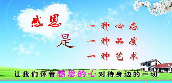 做人要懂得感恩,生活中需要我們感恩的事情很多,當你在和別人發(fā)生爭吵的時(shí)候,在因為一點(diǎn)小的事情與朋友發(fā)生矛盾的時(shí)候,在你和同事因為工作的事情而意見(jiàn)不合,在你和上司交流的時(shí)候因為他對你的批評而耿耿于懷等等這些,你是否知道問(wèn)題出在什么地方嗎,你進(jìn)行過(guò)分析嗎?不要只記得別人和你不順利的事情,也要想想別人對你的幫助,那你是否對幫助過(guò)你的同事說(shuō)過(guò)感謝的話(huà)嗎?