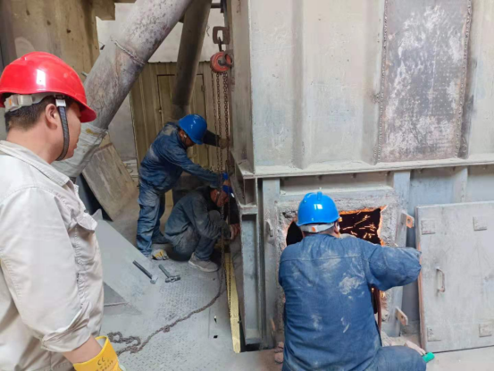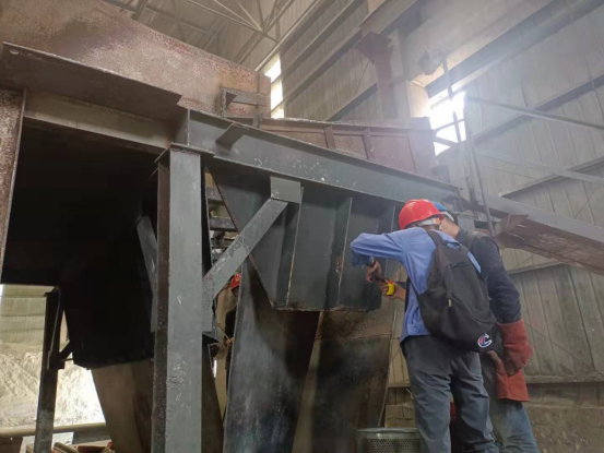 8月9日—11日,在1101皮帶電石渣上料口技改現場(chǎng),同水泥磨檢修相比,這里由于上料環(huán)境,環(huán)境密閉、空氣不對流,狹小的空間,為了趕進(jìn)度,提高技改質(zhì)量,這讓檢修工人更加需要具有更強的團結協(xié)作精神,他們在技術(shù)員的指揮下,分割、配對、焊接……生產(chǎn)裝置負責人丁伏山同志告訴大家:化工目前降負荷運行,大家要咬緊牙關(guān)、克服困難,盡快完成技術(shù)改造項目,盡早投入生產(chǎn)。在現場(chǎng)他是指揮員又是戰斗員,每一個(gè)細節他都結合經(jīng)驗,進(jìn)一步對現場(chǎng)改造完善再完善,帶領(lǐng)員工經(jīng)得住高溫的“烤驗”,經(jīng)得住連續作戰的勞累,于8月11晚20:30分,嚴格按工藝流程要求,完成此項技改項目,控制了下料的均勻性和連續性,確保了烘干破系統溫度和配料的穩定性。
