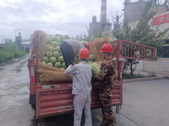 公司應對連日高溫,解暑菊花茶、西瓜、礦泉水等各種防暑降溫用品準備充足,以保證員工安全生產(chǎn)的后勤補給。