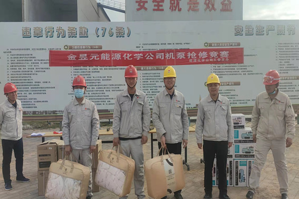 在熱烈的氛圍下,此次機泵搶修競賽圓滿(mǎn)落下帷幕,工會(huì )主席對競賽隊的成績(jì)和名次進(jìn)行了公布。第一名:熱力裝置;第二名:離子膜裝置、燒堿裝置;第三名:乙炔裝置、氯乙烯裝置、聚合裝置。