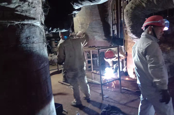 此時(shí)隆隆的吊車(chē)聲響徹在檢修現場(chǎng)。檢修作業(yè)最關(guān)鍵的時(shí)刻到來(lái)了,只見(jiàn)維修班長(cháng)熟練用割槍切割著(zhù)設備與框架的支點(diǎn),通紅的鐵水四處飛濺不時(shí)落在他的衣服上,留下黑色的小孔。他也顧不得這些,迅速完成了設備與框架的切割,其他人員也各司其職忙著(zhù)斷口。隨著(zhù)吊鉤的慢慢升起設備輕松與框架分離,由于空間狹小吊臂的活動(dòng)空間有限,吊裝作業(yè)顯得異常的緩慢,這對長(cháng)時(shí)間在寒冷的室外作業(yè)人員是個(gè)極大的考驗,伴隨著(zhù)指揮人員最后的口令下達,舊的再沸器設備被緩緩地放到地上。此時(shí)已過(guò)中午時(shí)分,雖然大家早已饑腸轆轆,但是每個(gè)人的臉上洋溢著(zhù)笑容,因為他們深深的懂得,只有經(jīng)歷了艱辛的拼搏,才會(huì )收獲成功的喜悅。