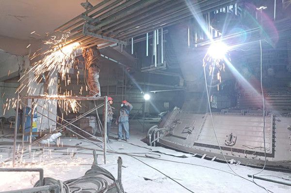 在檢修現場(chǎng),我們的檢修工人身系安全帶,手拿焊鉗,蹲在狹小的空間,焊接水管,耗時(shí)耗力,唯有飛濺如麥穗的焊花展現著(zhù)他們的顏色,魚(yú)骨似的焊縫是他們驕傲的成果。同時(shí)在檢修過(guò)程中也伴隨著(zhù)灰塵飛揚和各種安全隱患,但在我們檢修工人的臉上沒(méi)有看見(jiàn)沮喪的表情,看到的是檢修工人汗水浸透的后背,沒(méi)有休憩,只有投入;看到的是檢修工人一張張布滿(mǎn)灰塵的臉頰,沒(méi)有怨言,只有投入。在這里你可以看到那一個(gè)個(gè)無(wú)比堅毅的目光,感受到他們內心滿(mǎn)滿(mǎn)的自信和他們愛(ài)崗敬業(yè)、無(wú)私奉獻、不畏艱辛的精神;他們攜手共進(jìn)、分工合理、工作有序,只為創(chuàng )造安全的檢修環(huán)境;他們?yōu)樘崆巴瓿蓹z修任務(wù)加班到深夜,工作時(shí)間長(cháng)、工作量大,不辭辛勞,沒(méi)有任何怨言,充分展現了“團結、拼搏”的企業(yè)精神。