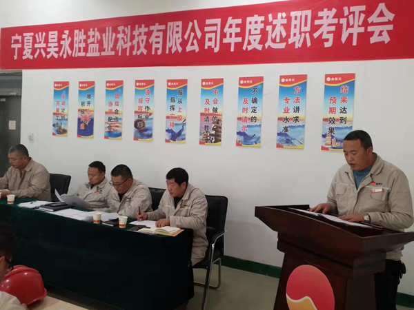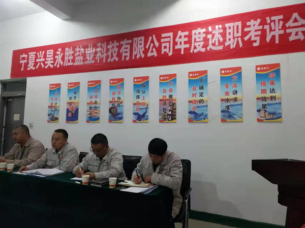 2021年12月2日下午,寧夏興昊永勝鹽業(yè)科技有限公司組織召開(kāi)2021年度管理人員述職考評會(huì ),聽(tīng)取管理人員履職情況、管理目標和重點(diǎn)工作完成情況、分管工作和本人履職中存在問(wèn)題及下一年的工作思路。