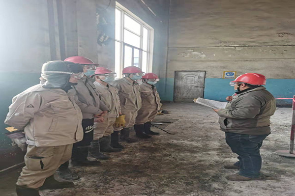 早上7:30分,只見(jiàn)參加檢修的維修工和操作工早已換好工作服全部抵達99%堿崗位,列隊站好聽(tīng)從裝置長(cháng)和安全員在檢修前安排的各自職責分工,并且對需要作業(yè)的項目進(jìn)行了安全技術(shù)交底。此次檢修時(shí)間緊、任務(wù)重、勞動(dòng)強度大,人員有各裝置派來(lái)協(xié)助的維修工和崗位操作工,大家齊心協(xié)力,不怕困難,一定要保質(zhì)、保量地完成所有檢修任務(wù),并做到“四不傷害”絕不能出現任何人身傷害事故發(fā)生。