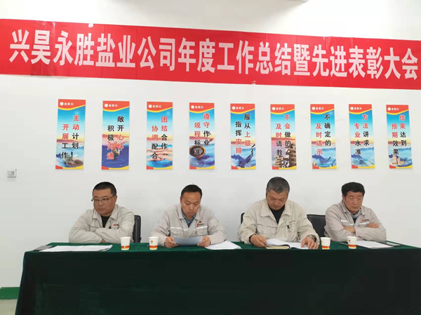 為順利實(shí)現2022年度安全環(huán)保和生產(chǎn)經(jīng)營(yíng)目標任務(wù),鹽業(yè)公司于2022 年 1月 6日 下午14時(shí)30分,組織召開(kāi)了2021年度生產(chǎn)經(jīng)營(yíng)總結會(huì )暨先進(jìn)表彰大會(huì ),反思工作中的得失,激勵各級人員認真履行崗位職責,為實(shí)現年度目標任務(wù)奮進(jìn)前行。
