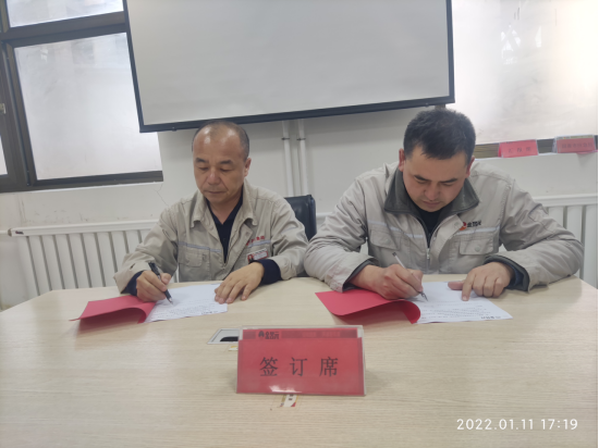 隨著(zhù)會(huì )議議程的進(jìn)行,公司總經(jīng)理與副總經(jīng)理、各單位負責人及副總經(jīng)理與分管單位、職能主管科室與專(zhuān)業(yè)之間簽訂了“安全環(huán)!迸c“經(jīng)營(yíng)管理”目標責任書(shū)。