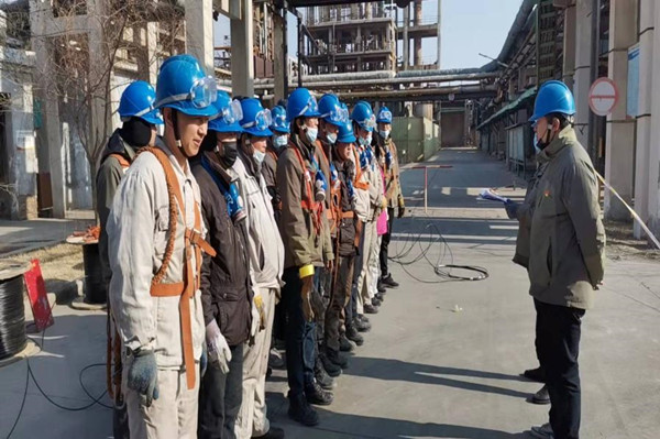 元旦過(guò)后,裝置領(lǐng)導開(kāi)會(huì )安排放置光纖的任務(wù),各級人員迅速投入其中,每天臨近上午下班前,相關(guān)班組辦理好登高證、檢修作業(yè)證、作業(yè)方案及工作危害分析,把需要放置的光纖盤(pán)拉到指定位置擺放整齊,準備好五樁一門(mén)和警戒帶,下午1點(diǎn)30分,所有作業(yè)人員系好安全帶,戴上防毒口罩、棉帽子到達現場(chǎng),落實(shí)完各項安全措施,確認具備條件,作業(yè)負責人現場(chǎng)進(jìn)行安全技術(shù)交底,交底完畢后,大家有序地爬上橋架,下面的人有拉光纖的,做標記的,往上送的,口哨一響,大家鼓勁使力、齊步向前,光纖一段一段整齊的放置于橋架內,在這幾天放置光纖的過(guò)程中,乙炔站和六萬(wàn)噸離子膜光纜距離較長(cháng),好幾位年長(cháng)的師傅并沒(méi)有因為年齡大而推脫,同樣是系好安全帶,穿戴齊全防護用品,早早地上到橋架上,找到合適的位置,安全帶系掛牢靠后,聽(tīng)從指揮,保證了放置光纖的任務(wù)提早完成。