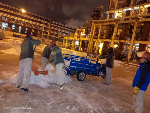 正月初五,固原迎來(lái)了2022年的第一場(chǎng)雪。堅守夜班的化工橫一班接班后,調度就對橫一班員工強調:“今天白天下了一天雪,晚上氣溫肯定會(huì )下降,現場(chǎng)巡檢時(shí)一定要注意防滑,上下樓梯抓好扶手,穩走慢行。防凍防凝是巡檢重點(diǎn)內容,大家要加大巡檢力度和頻次,尤其是要保證保溫伴管、排污閥、疏水閥等關(guān)鍵部位正常,操作人員要認真監控,及時(shí)觀(guān)察控制參數的變化情況,精準調控,確保安全生產(chǎn)運行”。一場(chǎng)大雪后,固原市銀裝素裹,人們在盡情地享受瑞雪樂(lè )趣。但在廠(chǎng)區內“沙沙”聲、“咣咣”聲不絕于耳,當班的班組長(cháng)及員工“以雪為令”,迅速行動(dòng),不畏嚴寒,揮舞著(zhù)鐵鍬、掃帚、簸箕等一切能派上用處的除雪工具,你鏟我掃相互配合,全面徹底清理室外道路、巡檢通道、裝置現場(chǎng)等區域的積雪和凍冰,經(jīng)過(guò)數小時(shí)的奮戰,現場(chǎng)干凈整潔,切實(shí)保證了裝置安穩生產(chǎn)。