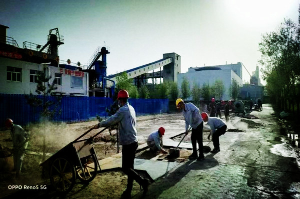 下白班的同事們主動(dòng)拿起刷子給渣場(chǎng)久經(jīng)風(fēng)吹日曬失色的護欄重添上新的色彩,我們的職工用自己笨拙的手創(chuàng )造出了我們美麗的家園。