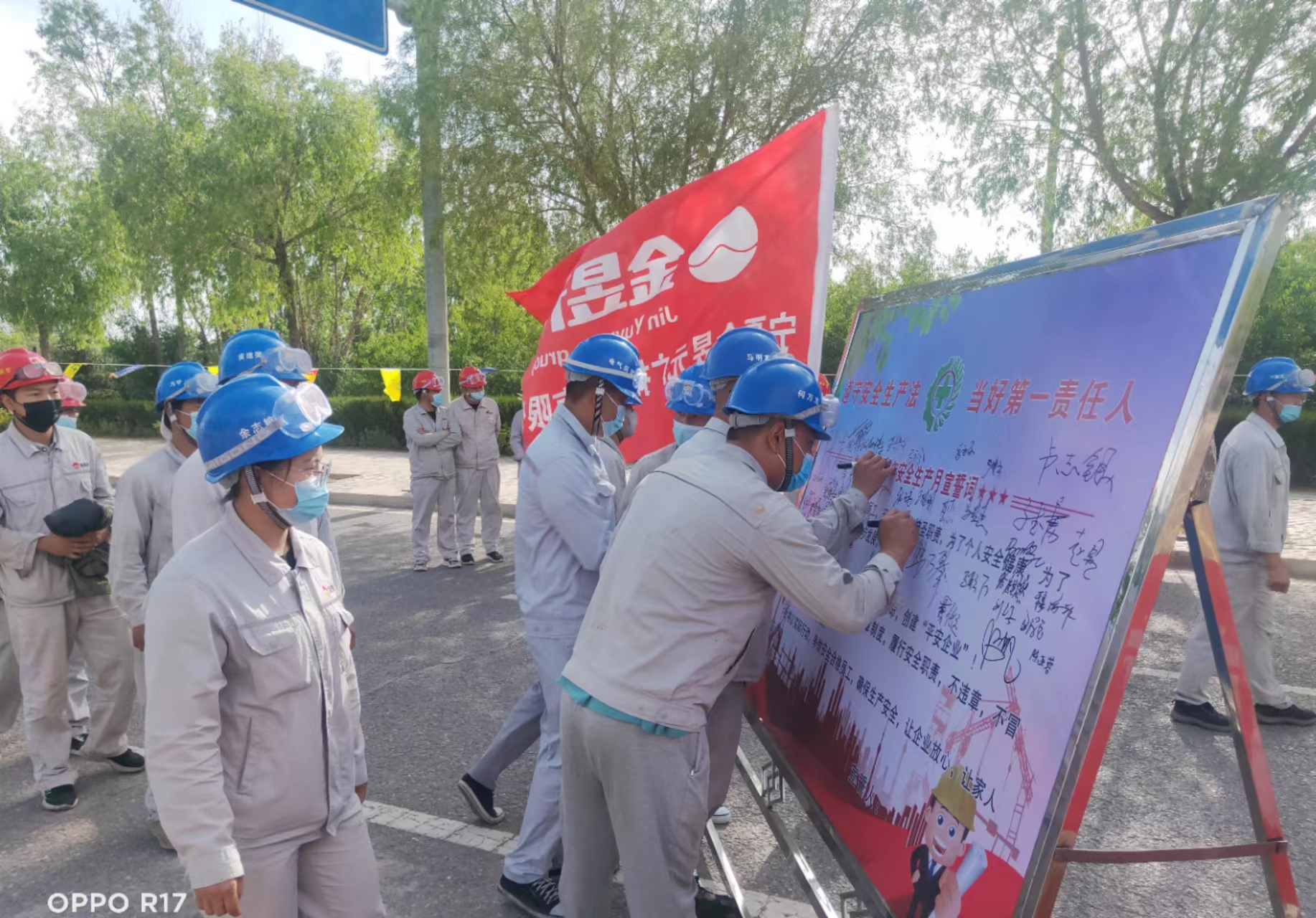 啟動(dòng)儀式上,安全總監帶領(lǐng)全體參會(huì )人員進(jìn)行了莊嚴宣誓,每一位員工都做出了自己對待安全工作的承諾,并簽下自己的姓名。
