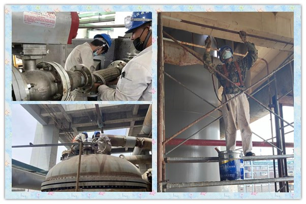 夏日炎炎,維修人員在高溫下對設備進(jìn)行檢修,不怕苦不怕累,裝置及時(shí)提供飲用水,防止人員在檢修的過(guò)程中發(fā)生中暑,同時(shí)及時(shí)的完成工作任務(wù),保障生產(chǎn)運行正常。在檢修中,堅持安全第一,揮灑汗水,關(guān)鍵時(shí)刻義無(wú)反顧,挺身而出,困難面前,毫無(wú)退卻,只為檢修工作安全。