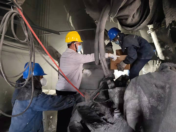 檢修開(kāi)始時(shí)對現場(chǎng)可能存在的危險有害因素進(jìn)行分析評估,制定檢修方案,落實(shí)安全應急救援措施,壓實(shí)各級管理人員責任,要求相關(guān)單位人員深入檢修現場(chǎng),積極參與檢修中,檢修現場(chǎng)到處都是忙碌的身影,都記錄著(zhù)一個(gè)動(dòng)人的故事,也是一幅描繪生動(dòng)的人物素描,總經(jīng)理王鐵鎖不辭勞累奔波在凈化系統與爐面更換設備現場(chǎng),落實(shí)安全措施同時(shí)對安裝下料柱人員,底部環(huán)的規范性做出指導。