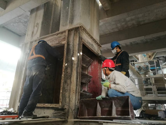 選粉機進(jìn)行補焊風(fēng)格輪,由于作業(yè)空間狹小,不好展開(kāi)工作,他們克服困難,在保證安全第一的情況下順利完成檢修工作任務(wù)。