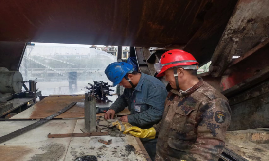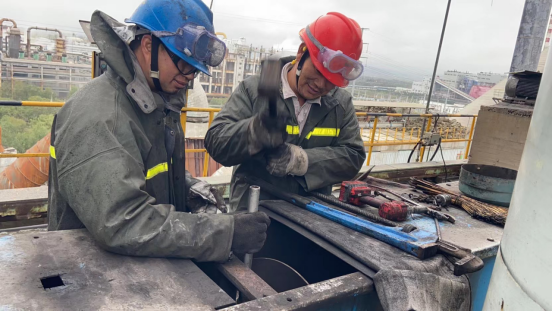 聽(tīng),現場(chǎng)鐵錘叮當,看焊花四濺,一幕幕忙碌的身影,無(wú)不令人感動(dòng)不已......剛順著(zhù)樓梯趴下,又要順著(zhù)樓梯爬上,總經(jīng)理吳紅衛同志既是現場(chǎng)的指揮員、進(jìn)度的監督員,又是現場(chǎng)的協(xié)調員,哪里需要怎樣干,他便第一時(shí)間提出自己的見(jiàn)解。映入眼簾的是他總是第一時(shí)間到達現場(chǎng),最后一個(gè)離開(kāi),一身勞保衣服一天下來(lái)總要背著(zhù)一層土。正是這種帶動(dòng),全體維修人為了不窩工,不影響進(jìn)度,午飯總是簡(jiǎn)單的填飽肚子繼續干,個(gè)個(gè)干勁十足,衣服早已被油污和灰塵、汗水摻雜浸濕,黑乎乎的臉蛋也分不清誰(shuí)是誰(shuí)。
