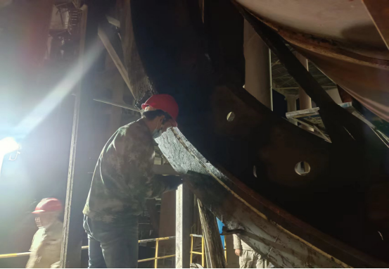 從9月14日00時(shí)00分到9月30日8時(shí)26分回轉窯點(diǎn)火升溫,再到10月1日00時(shí)40分回轉窯投料,資源循環(huán)公司圍繞回轉窯內耐火材料更換施工、更換液壓擋輪、烘干破工藝管道、動(dòng)態(tài)選粉機內耐磨涂層修復,更換出口管道及膨脹節,補焊殼體內襯、篦冷機側墻、煙室斜坡、分解爐錐部、煙室縮口、三次風(fēng)管內部、窯口澆注料的澆筑、1909提升機實(shí)施大修,更換整套板鏈、部分料斗、尾輪、全廠(chǎng)11臺變壓器除塵及試驗、窯尾在線(xiàn)監測系統安裝、調試等16個(gè)重點(diǎn)大修項目,歷時(shí)16天,在全體參檢工友們不辭辛苦、夜以繼日的拼搏奮斗下,按時(shí)間節點(diǎn)安全有序圓滿(mǎn)完成59項檢修項目,其中小修18項、中修25項、大修16項,為圓滿(mǎn)實(shí)現“降本降耗,開(kāi)源節支”活動(dòng)奠定了堅實(shí)的運行基礎。