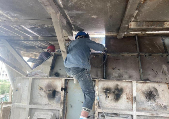 記的有一次設備大搶修,余偉和幾位維修師傅更換篦冷機2623拉鏈機導軌和鏈條。那天,正逢夏季烈日炙烤;但是由于搶修任務(wù)緊,絲毫沒(méi)有喘氣緩一下地機會(huì )。一道道美麗的電焊弧光照亮了那早已汗水打濕的臉頰,臉頰上布滿(mǎn)了灰塵和晶瑩的汗珠,那才是體現出來(lái)的一種愛(ài)崗敬業(yè)的美。