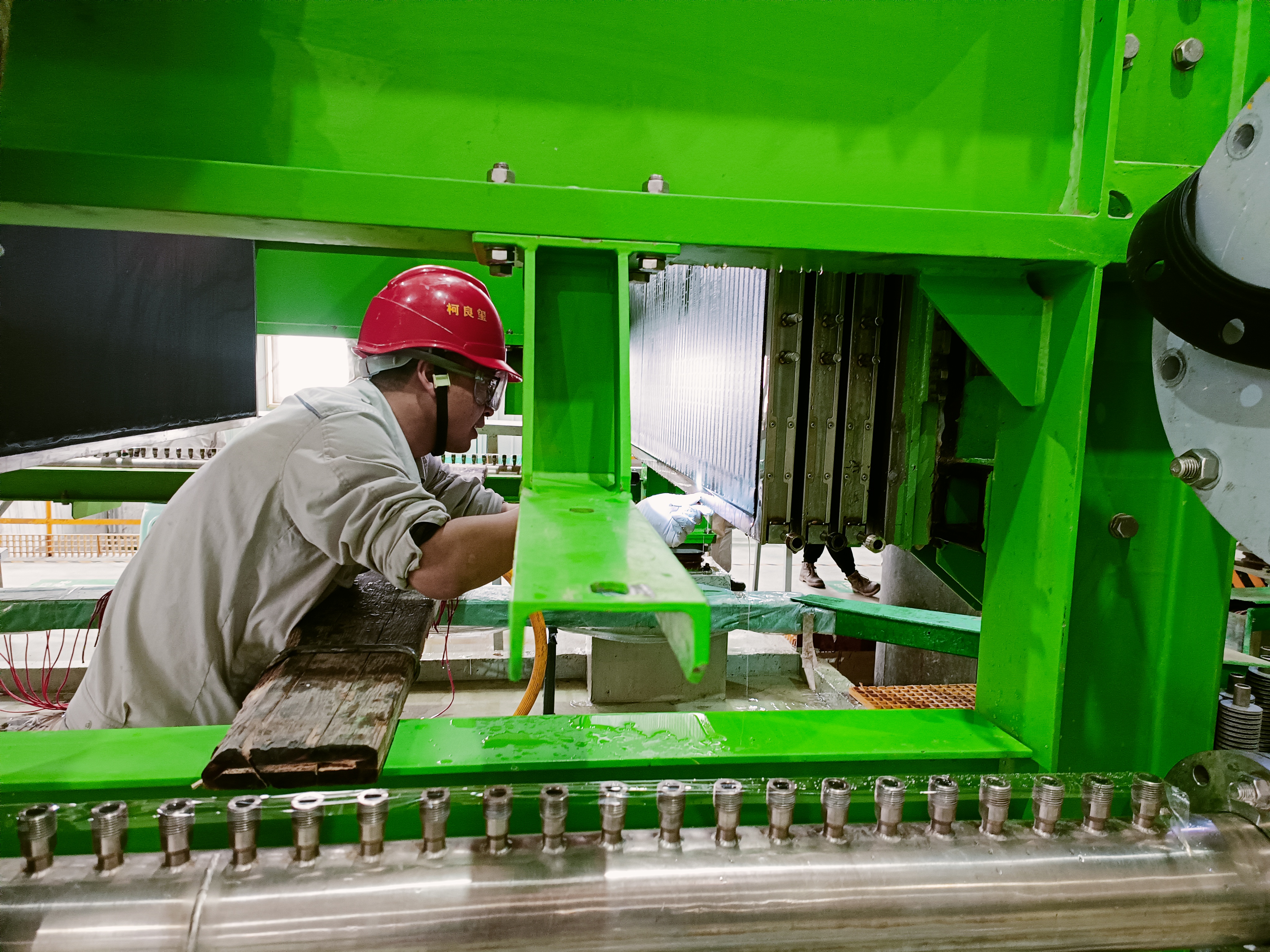 電解槽的檢修總是爭分奪秒,在電解二樓高溫下參加檢修電槽,對檢修人員來(lái)說(shuō),是對責任心、耐心、細心和體力的諸多考驗。讓我們走進(jìn)電槽檢修現場(chǎng),了解那些奮戰在一線(xiàn)檢修的員工和維修工。李主任帶領(lǐng)這幫兄弟們干的非常起勁,看到李主任汗水悄然從發(fā)間沿鬢角而下,順著(zhù)脖子,打濕了衣領(lǐng),也濕了后背,作為電解裝置的一把手,每次總是親力親為,李主任總是會(huì )和這幫兄弟說(shuō):“要擼起袖子加油干”,保證我們的檢修質(zhì)量和檢修進(jìn)度如期完成。