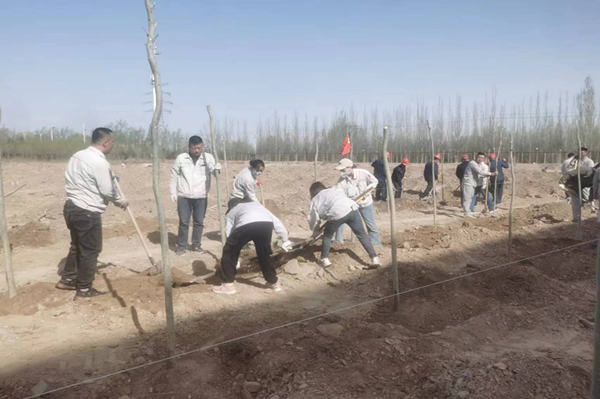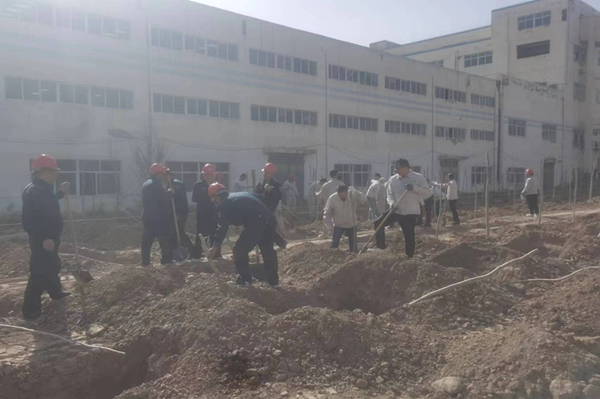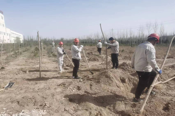 春光明媚的四月,萬(wàn)物復蘇,春風(fēng)吹綠了枝頭上的嫩芽,吹綠了地上的小草,大地上的每一個(gè)角落都充滿(mǎn)了春天的氣息。在這美好的季節,公司全體領(lǐng)導干部和一線(xiàn)員工積極、主動(dòng)參與植樹(shù)活動(dòng)。植樹(shù)現場(chǎng),大家干勁十足,挽起衣袖、拿起鐵鍬,為一棵棵新樹(shù)苗安置"新家"。今年種植新疆楊2200多棵、絲綿木650棵、大松樹(shù)近300棵、小榆樹(shù)30000棵,為新的春天又增添了一抹盎然的綠意?粗(zhù)那一片片自己親手種下的樹(shù)苗在微風(fēng)中搖曳,無(wú)不露出幸福的笑容,在一張張的照片中和鏡頭里留下了自己美好的回憶。