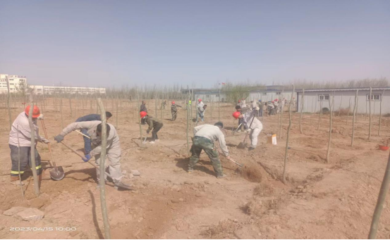 公司每年的春季都會(huì )制定本年度的環(huán)保節能目標,對廠(chǎng)區內的綠化設施進(jìn)行完善,加大綠化面積,組織一年一度的植樹(shù)活動(dòng)。由于公司主要是生產(chǎn)建筑材料的,以普通硅酸鹽水泥和水泥原材料熟料為主的化工企業(yè),必不可少的廠(chǎng)區硬化占到了一定的面積,導致綠化覆蓋率較少。但是就是這樣的條件下,公司領(lǐng)導還是在有限的廠(chǎng)區綠化面積里盡可能的多種樹(shù),改善員工的工作生產(chǎn)環(huán)境,保護環(huán)境衛生。公司領(lǐng)導組織員工在原料堆廠(chǎng)的邊上再種一排楊樹(shù),由于原料廠(chǎng)邊上常年受運輸車(chē)輛的碾壓,地質(zhì)堅硬,鐵鍬等普通挖土工具挖土困難,導致種樹(shù)進(jìn)度緩慢。于是公司領(lǐng)導就協(xié)調安排了挖掘機進(jìn)行挖樹(shù)坑,挖好了樹(shù)坑,就安排各裝置對于各自區域的樹(shù)苗進(jìn)行移栽,經(jīng)過(guò)大家的齊心協(xié)力,樹(shù)苗都被小心翼翼的放到了新挖的樹(shù)坑里,你扶樹(shù)苗,我埋土,好不熱鬧,在大家共同努力下一排整齊的樹(shù)苗矗立在原料堆場(chǎng)的邊上。守護著(zhù)這邊我們?yōu)橹畩^斗的熱土。