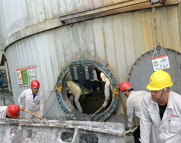人在專(zhuān)注干一件事的時(shí)候是最帥氣的,盡管他們身上滿(mǎn)是油污,也掩蓋不住他們認真、擔當和富有責任感的品質(zhì)。他們把每一次檢修都當成一次全新的挑戰,把每一次檢修都當做一次經(jīng)驗的積累,一張張布滿(mǎn)油污、灰塵的面孔,綻放出最為清澈和動(dòng)容的笑容。你看,脫硫塔檢修現場(chǎng),他們在滿(mǎn)是泥水的脫硫塔內來(lái)來(lái)回回奔跑了無(wú)數次,泥污沾滿(mǎn)了全身每一個(gè)地方,不知是汗水還是泥水打濕了衣服。他們干活不分你我、不惜力氣、相互配合,安全高效地完成了料液清理工作,為脫硫塔消漏、防腐做好了準備工作。